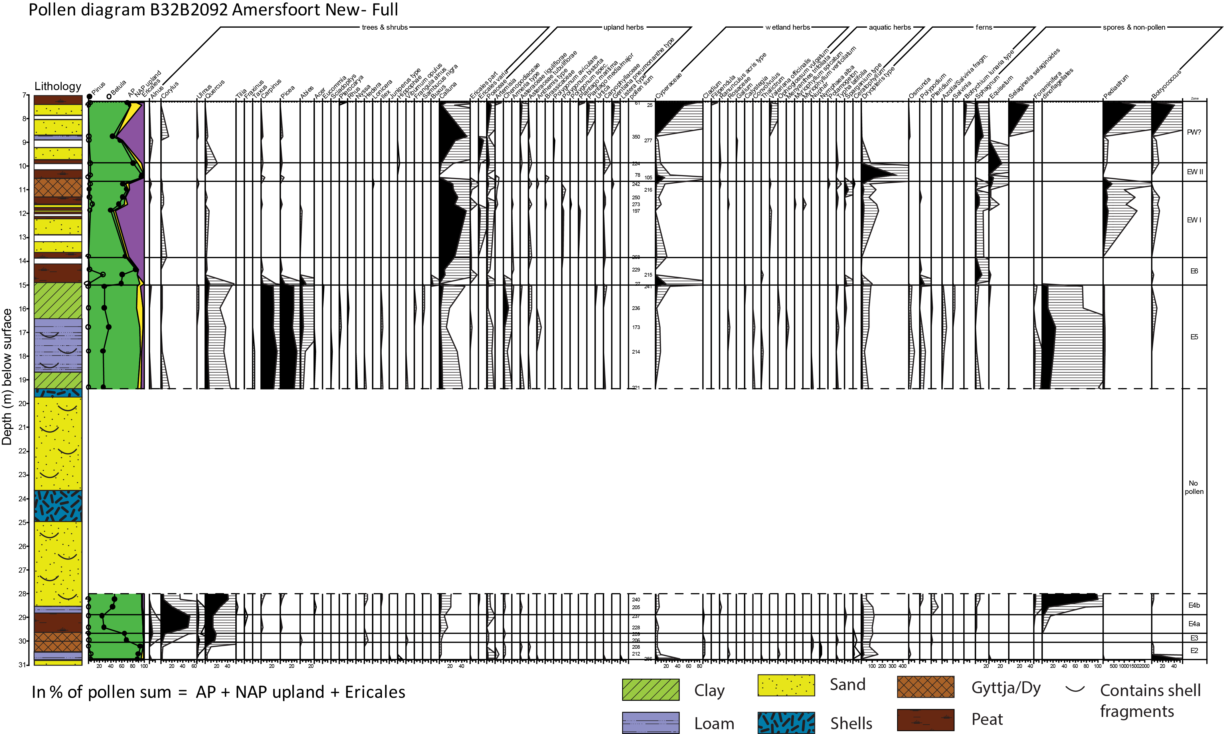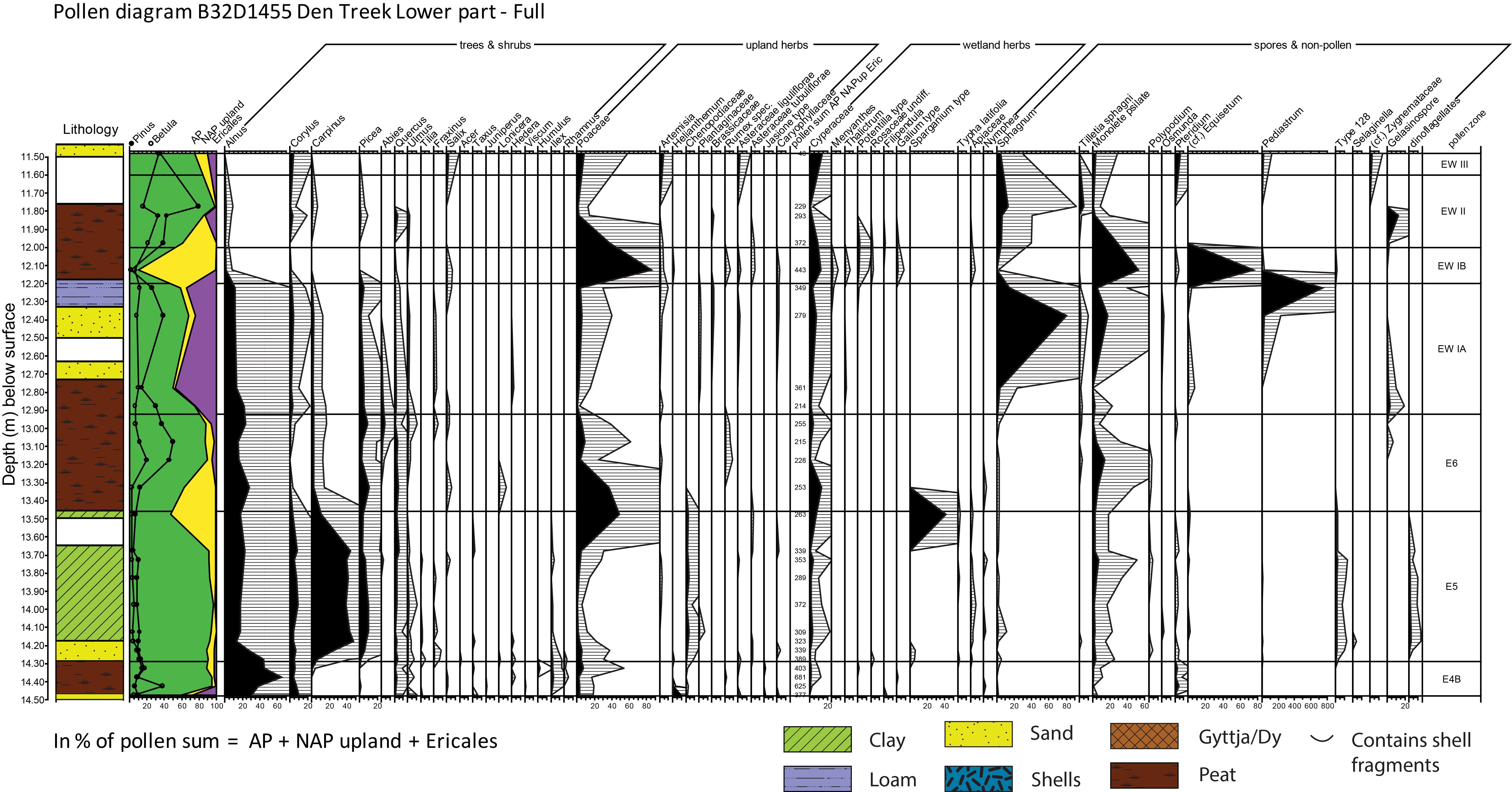In line with Zagwijn (1961), the E6 to EWI boundary is defined at the first opening of the vegetation cover with Calluna, Poaceae and Artemisia increase, often coinciding with a lithological change from organic to clastic deposition, reflecting increased landscape instability.