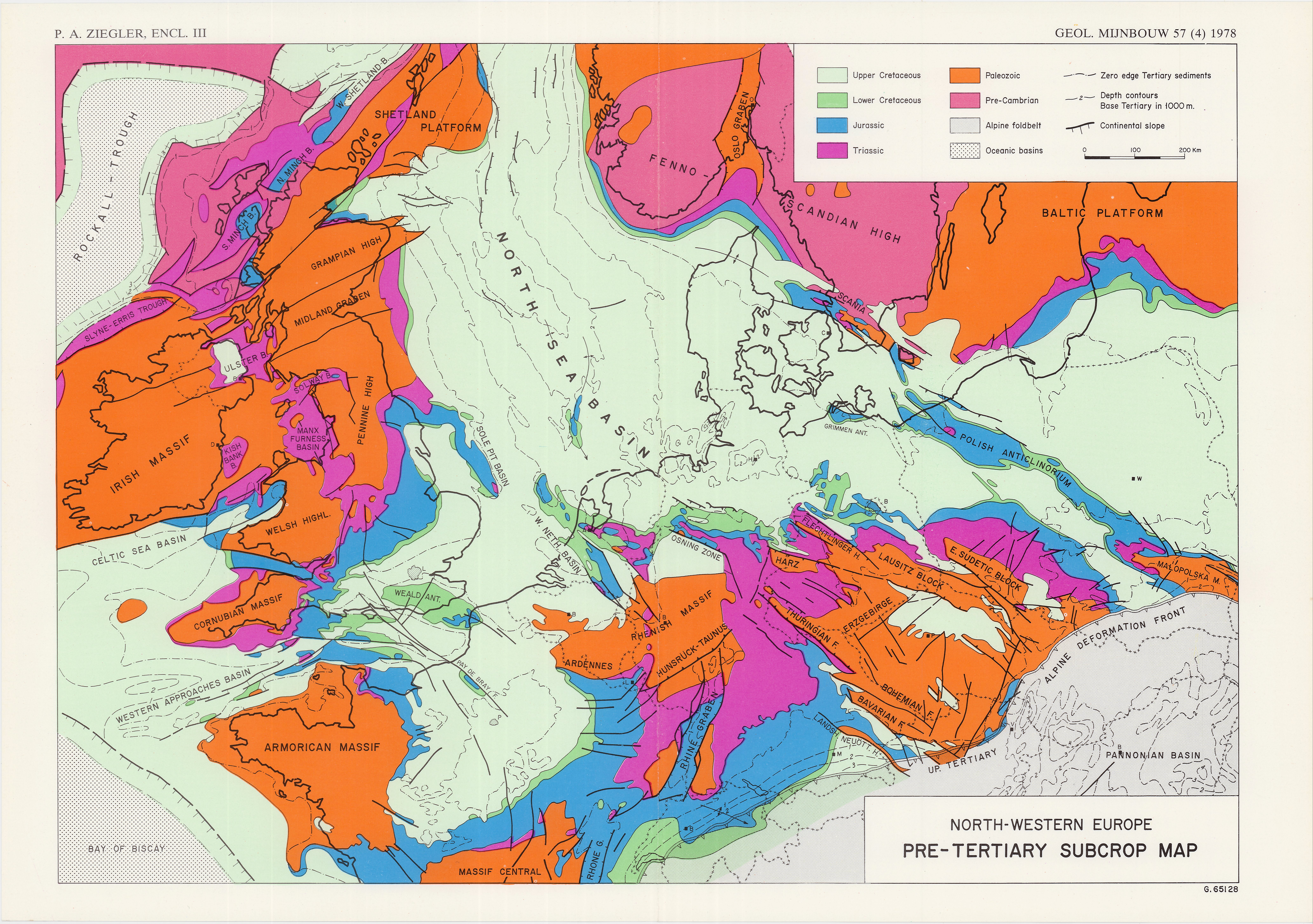 This paper discusses the geologic evolution of North-Western Europe from Late Silurian to Cainozoic times on the base of 13 palaeogeographic and 6 palaeotectonic maps. Furthermore a pre-Permian and a pre-Tertiary subcrop map as well as an isopach map of Upper Permian to Cainozoic sediments is presented. This synthesis is based to a large extent on geophysical and subsurface data acquired by the oil industry during its exploration efforts in the various on-shore and offshore sedimentary basins of North-Western Europe. A more comprehensive summary is given at the end of the paper.